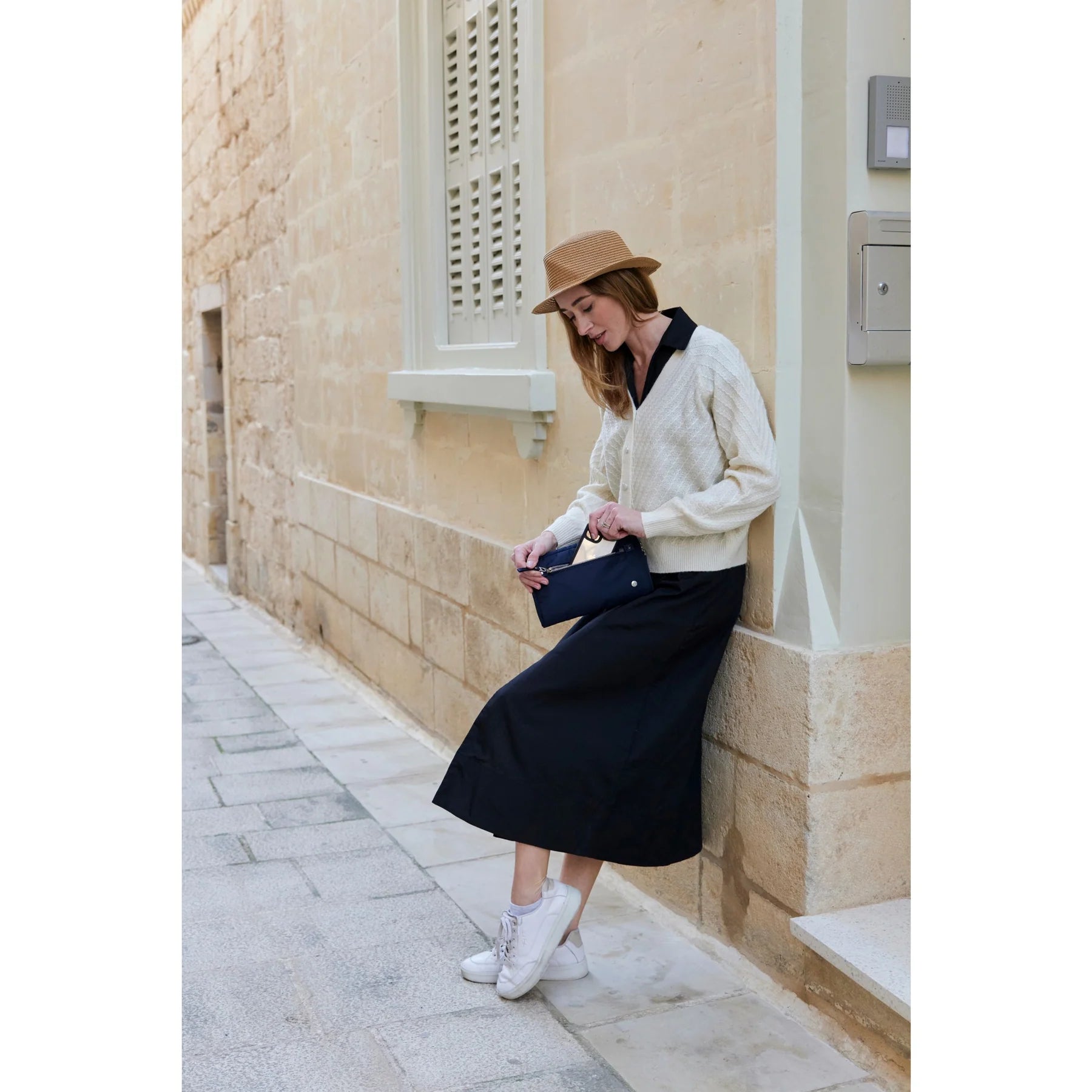 Introducing a truly versatile anti-theft pack that adapts to your needs in three different ways: as a crossbody or sling pack with an adjustable cut-resistant strap and as an elegant clutch for a night out when the strap is removed. Designed to be your perfect companion for both travel and everyday use, this pack caters to adventurers and city dwellers alike. Stay organized and secure with its built-in RFID-blocking wallet featuring four card slots and a passport pocket, along with a spacious zipped RFID-blocking pocket for boarding passes or longer wallets. With reputable anti-theft technology, including cut-resistant materials, lockable zippers, and RFID-blocking materials, this pack ensures your belongings are protected. Plus, its polished hardware and sleek style effortlessly blend functionality with sophistication. This bag is made with post-consumer recycled polyester (rPET), equivalent to 5 recycled plastic bottles.