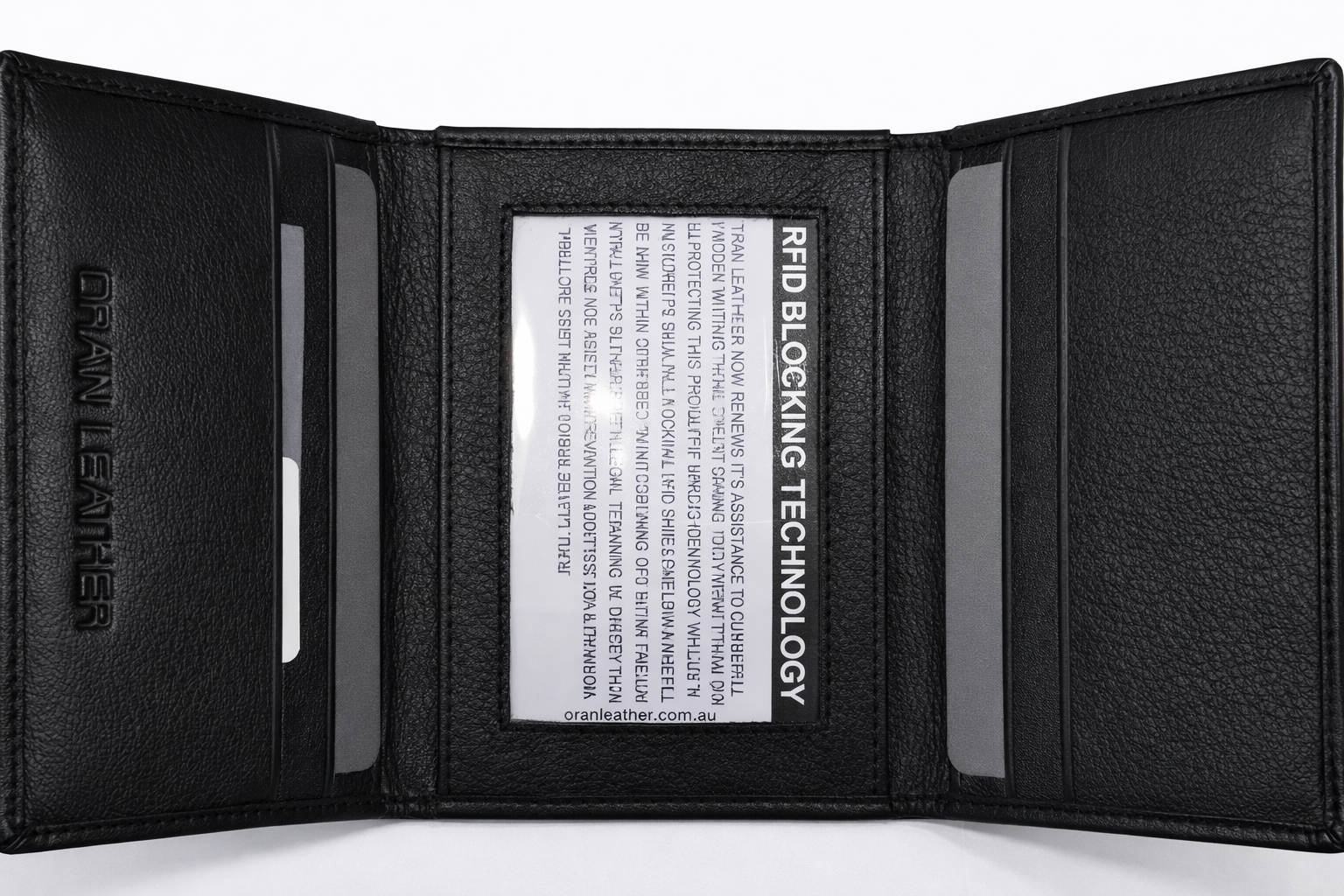 Stay organised with the Men’s Tri-Fold Wallet from Oran Leather, a proudly Australian brand known for crafting stylish and functional leather goods. Made from soft, smooth leather, this wallet features six card slots, one ID window, two note sections, and RFID technology to protect your cards from electronic theft. Compact and practical, it keeps all your essentials secure while combining timeless style with everyday functionality.
