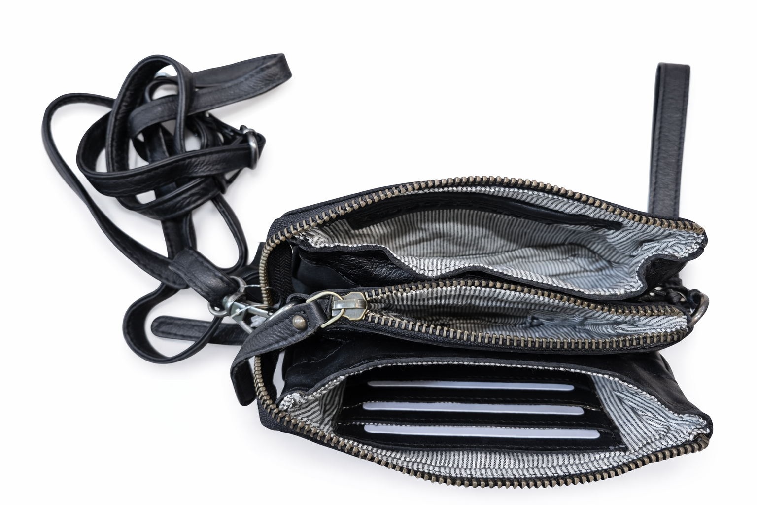 - 三隔层手拿包,也可用作日常钱包。