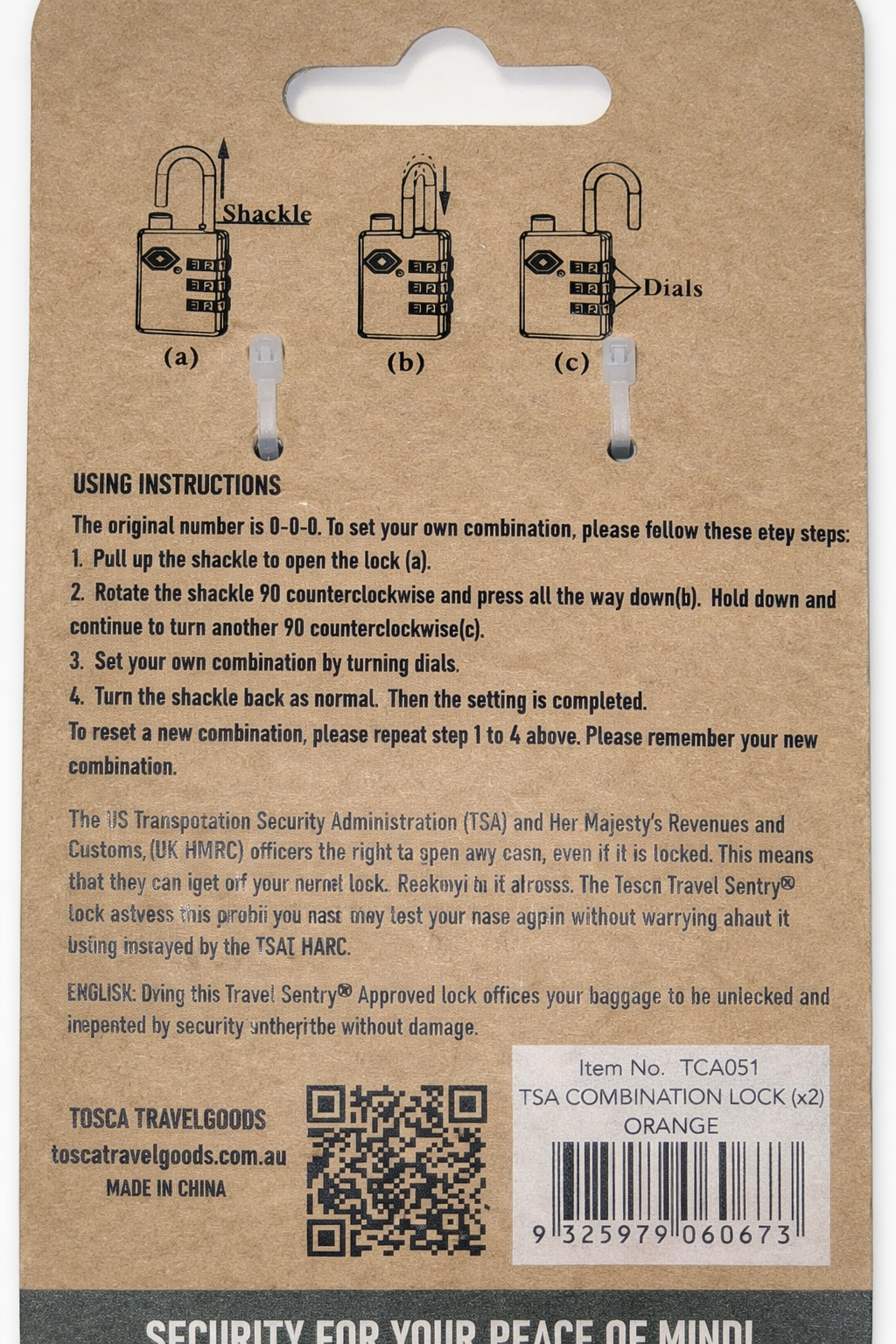 Travel securely and with ease using these colourful TSA-approved Combination Locks, designed to keep your luggage and personal belongings safe during transit. Ideal for suitcases, backpacks, and travel bags, these locks attach in seconds, providing solid and reliable protection while ensuring your luggage can be inspected quickly by airport security without causing damage.